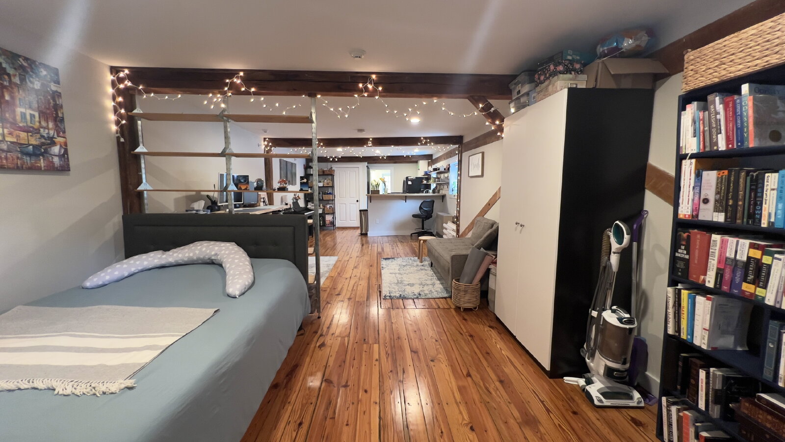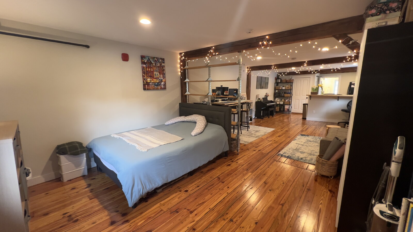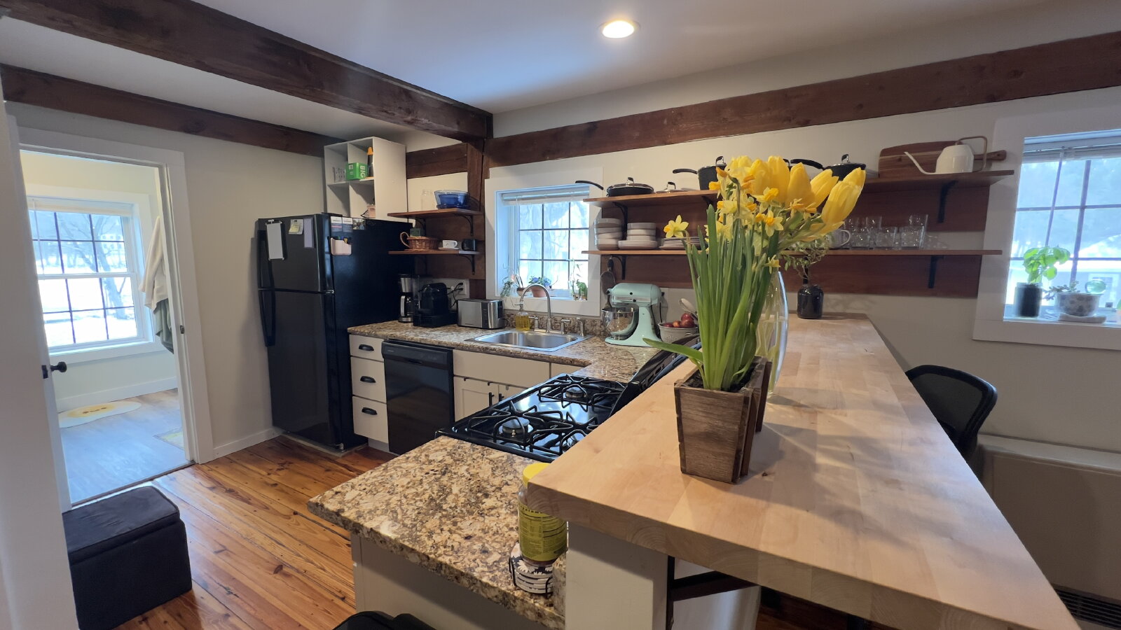 Beautifully renovated apartments in the historic barn of the Mill Pond Center. This stylishly designed studio, on the second floor, features today's modern conveniences and safety requirements while retaining the charm of the early 1900's barn. Wood floors, exposed beams, granite counters, and sleek cabinetry are just some of the design features.